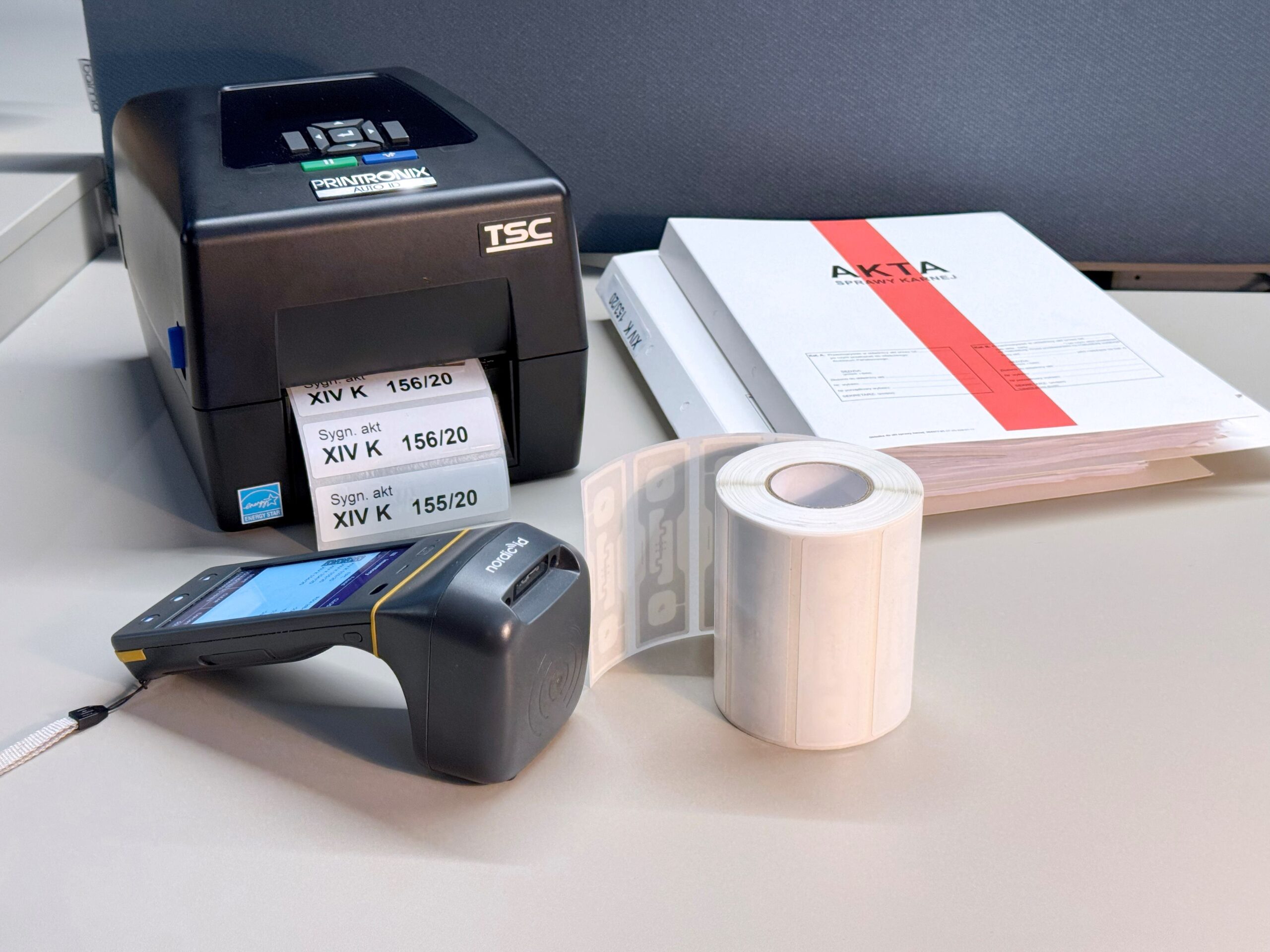 The system for locating and searching court records, land and mortgage registers and other documents is an RFID solution that improves document management in archives, courts and administrative institutions. Its main purpose is to quickly search for documents in archives, keep records and track the movement of documents. All documents and folders are marked with RFID tags, which have a unique number encoded with them. Searching for court records, land and mortgage registers, other documentation is carried out using a handheld RFID terminal. After entering the signature number into the RFID terminal, the racks and cabinets in a given room are scanned. With the use of radio waves, the reader locates the searched document with an RFID tag in the space between the shelves with an accuracy of several centimeters and signals its presence. An RFID system can also have a document control function to track the movement of documents between departments or courts. RFID readers and RFID antennas installed in the archives record the removal/return of an RFID-tagged document. The system increases security by restricting access to only authorized persons and recording any document movements. It is a solution that complies with archival regulations and perfectly supports the digitization of public institutions.